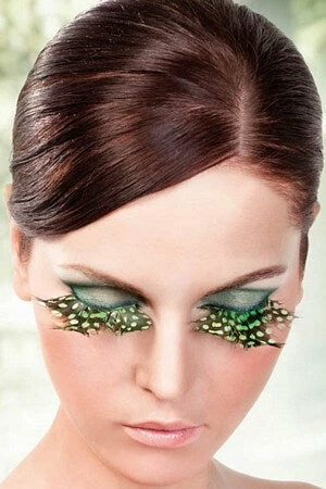 These light green and black feathered eyelashes are sure to be a topic for conversation. Lash glue included with lashes.