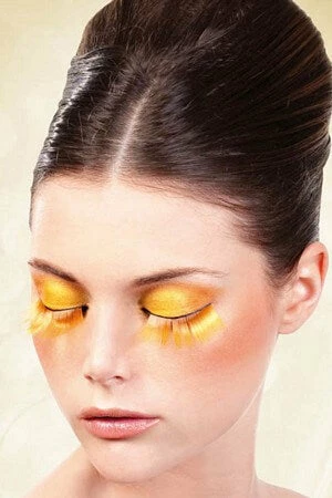 Dare to be different with a pair of orange glitter eyelashes. Lash glue included with lashes.