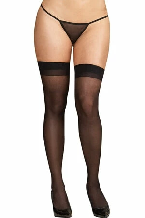 These sexy thigh highs accentuate the look of your shapely legs with a slim seam that runs all the way down the back. The sheer thigh highs are perfect to wear with sexy costumes or seductive lingerie looks.