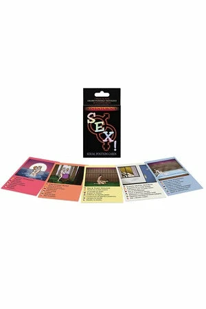 Deal this naughty deck and rake in a sheet-scorching night of sexual adventure! Each card illustrates an exciting sex position. Play a game and you’ll come out with a fully-developed five-position fantasy for you both to reenact together! Includes 50 sexual position cards + 3 game guide cards that’ll teach you to play Ultimate Fantasy, Lover’s Libido, and Fortune Teller! The Sex! Card Game deck is organized into five different colors according to hotness: red (foreplay), orange, yellow, white, and light blue (scorching hot!). Play one of the included games – the winner gets the fantasy they’ve created! This game is great for anyone wanting to add some variety to his or her positions, or to become a little more effortlessly adventurous in bed. It’s also a great way to open up and get your partner to open up about their preferences and fantasies! From Kheper Games.