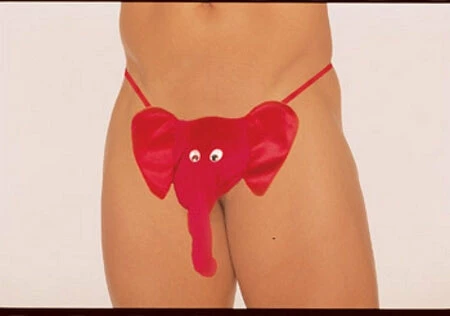 Go nuts in the bedroom with a sexy and fun Mr. Peanut men’s pouch. This playful pouch features a strategically place red hot elephant head complete with fun eyes and big floppy ears. The pouch is attached to a slim waistband.