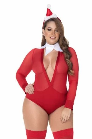 This sexy elf costume from Mapale includes a long-sleeve bodysuit in sheer mesh, laser cut collar and headband.
