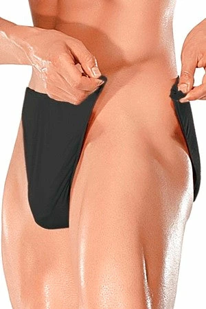 Men’s bikini underwear that pull apart at the sides for easy removal.