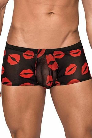 Lo rise short, high cut legs, comfort pouch. Sheer, soft,all way stretch fabric, lips print. 92% Nylon 8% Spandex