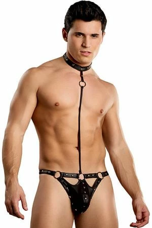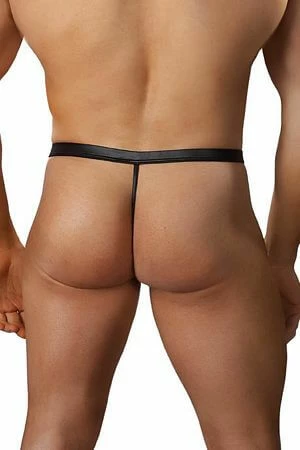 Sleek and seductive tormentor thong studded leather look molds to the body like a second skin.