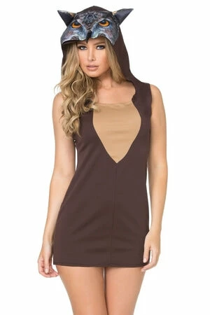 Whirl off to a world of woodland friends. Dress with authentic owl hood. Comfortable and cozy.