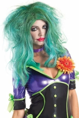 Funny Lady Villain Wig features a long green teased wig.