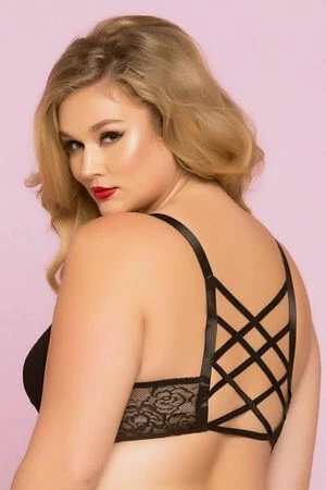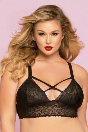 Rose galloon lace bralette with lattice back detail and picot elastic trim. 90% NYLON, 10% ELASTANE