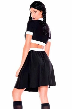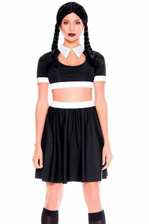 2 Pc Gothic Child costume includes a black and white crop top with collar and above the knee skirt.