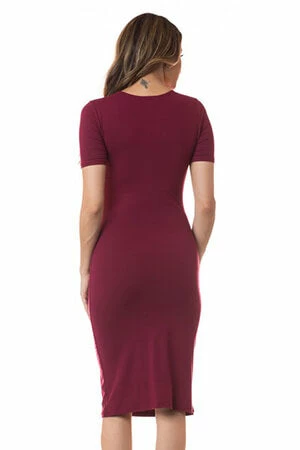 Simply stated, our Short Sleeve Crew Neck Midi Body-Con Dress is a stunning addition to your daytime collection.