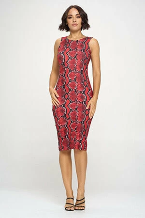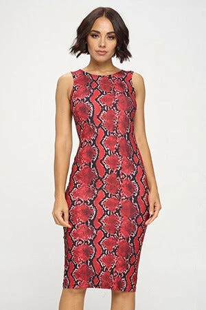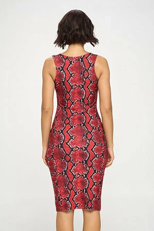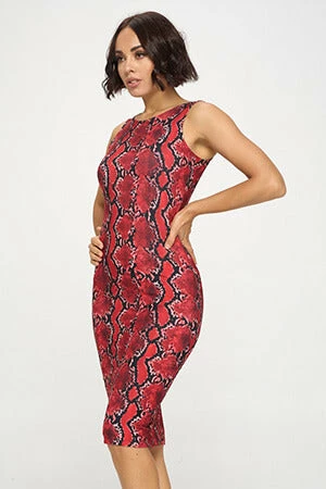 A seductive blend of snake print and soft fabric that hugs your curves. Pair with a cute pair of white sneakers and a jean jacket for a chic look. Or you can dress up for the night out with some heels.